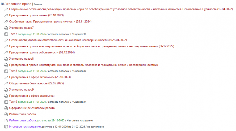 Представлены ответы на большинство вопросов из тестов 7-9 по предмету "Уголовное право" для студентов Витте.