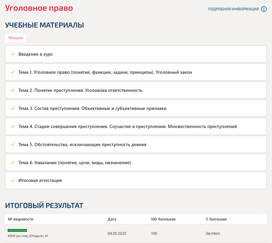 💯 Уголовное право Синергия МосАП Ответы на тесты 1-6, итоговый тест