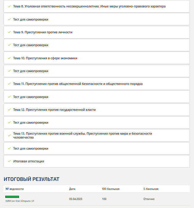 💯 Уголовное право Синергия Колледж Ответы на тесты 1-13, итоговый тест