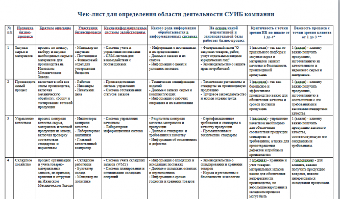 - разработайте чек-лист для определения области деятельности СУИБ компании;