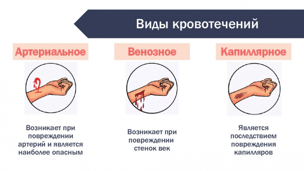 В зависимости от причины возникновения различают три вида кровотечения: