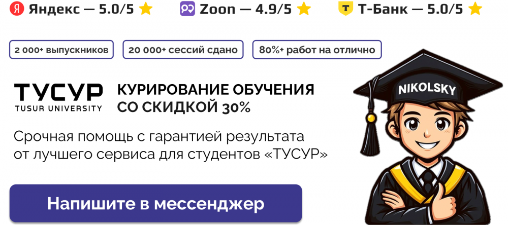 Курирование обучения в ТУСУР с гарантией результата по лучшим ценам с ежедневной поддержкой от экспертов "Никольский Помощь"Получите помощь и ответы на любые вопросы по обучению в ВУЗе от эксперта с опытом свыше 5+ лет