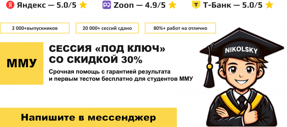 Срочная помощь с сессией под ключ в ММУ с гарантией результата по лучшим ценам с ежедневной поддержкой от экспертов "Никольский Помощь"Получите помощь и ответы на любые вопросы по обучению в ВУЗе от эксперта с опытом свыше 5+ лет