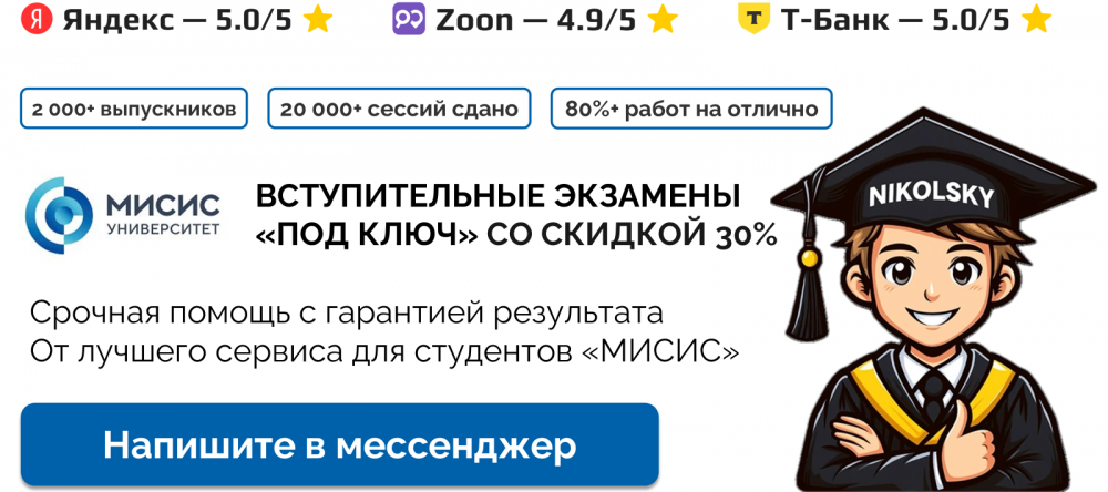 Срочная помощь со вступительными экзаменами в МИСИС с гарантией результата по лучшим ценам от экспертов "Никольский Помощь"