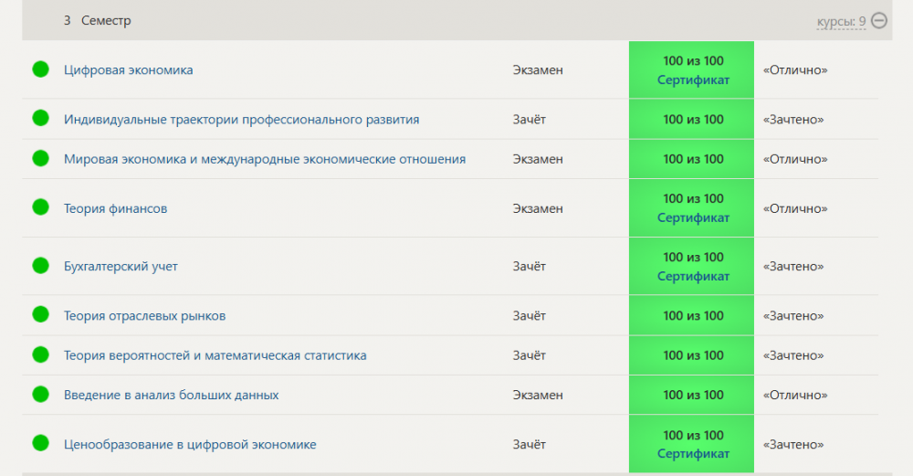 Пример сданной сессии: