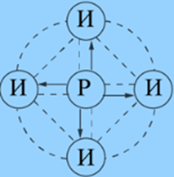 В … структуре коммуникаций ярко выражен «коммутатор-руководитель», через которого передаются все задачи.
