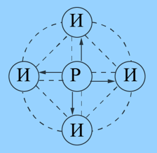 В … структуре коммуникаций ярко выражен «коммутатор-руководитель», через которого передаются все задачи