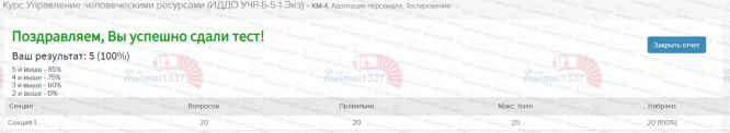 Курс Управление человеческими ресурсами - КМ-4. Адаптация персонала. Тестирование - 100%