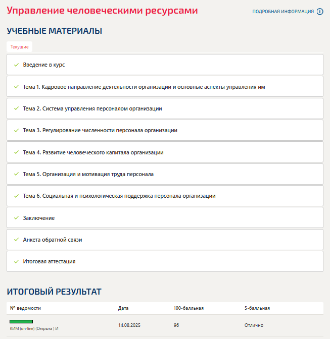 Ответы к экзамену Тесты 1-6, Итоговый: Управление человеческими ресурсами (Темы 1-6) вариант Компетентностный