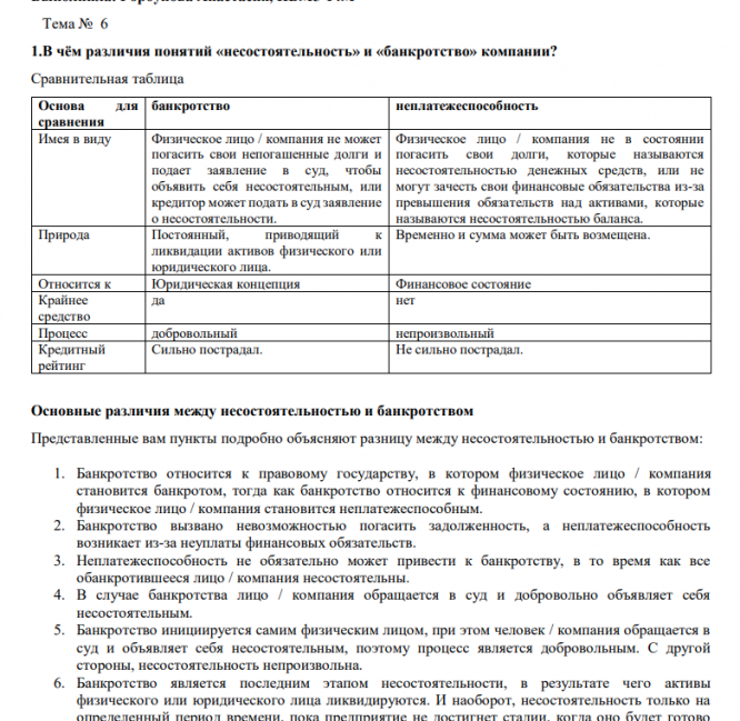 1.В чём различия понятий «несостоятельность» и «банкротство» компании?