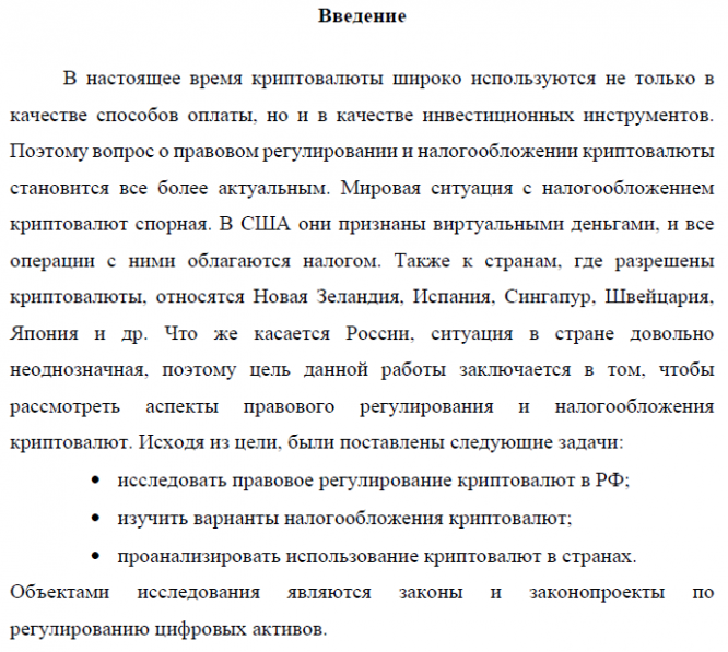 Курсовая работа: Регулирование криптовалют: правовой и налоговый аспекты
