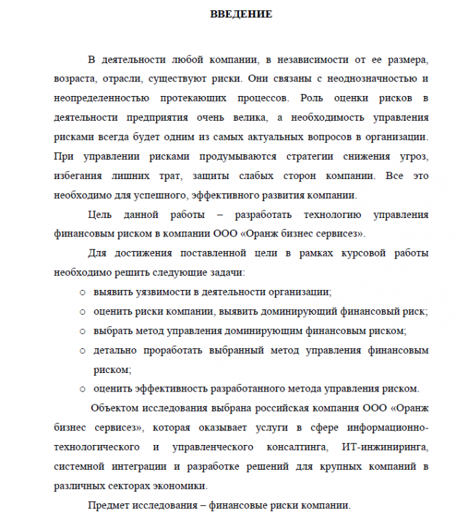 Курсовая работа: Разработка технологии управления финансовым риском в компании ООО "Оранж Бизнес Сервисез"