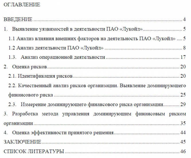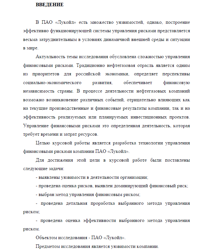 Курсовая работа: Разработка технологии управления финансовыми рисками организации на примере ПАО "Лукойл"