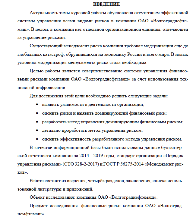 Курсовая работа: Совершенствование системы управления рисками ОАО "Волгограднефтемаш" за счет использования технологий цифровизации