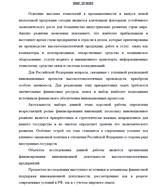Курсовая работа: Особенности финансирования предприятий высокотехнологичной сферы