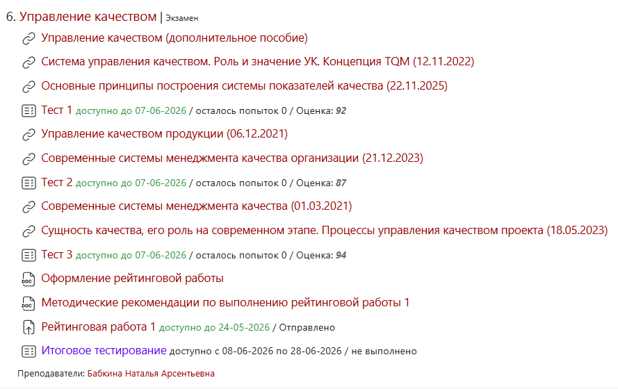 Ответы к экзамену Тесты 1-3: Управление качеством (Тесты 1-3)