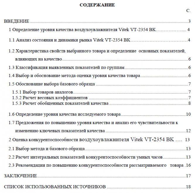 Главная » Учебные материалы » Управление качеством » Домашние задания » МГТУ им. Н.Э.Баумана » 5 семестр » Определение уровня качества и оценка конкурентоспособности воздухоувлажнителя Vitek VT-2354 ВК
