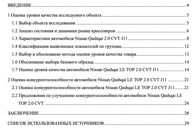 ДЗ: Оценка уровня качества и оценка конкурентоспособности автомобиля Nissan Qashqai 2.0 LE TOP CVT J11 (Word!!!)