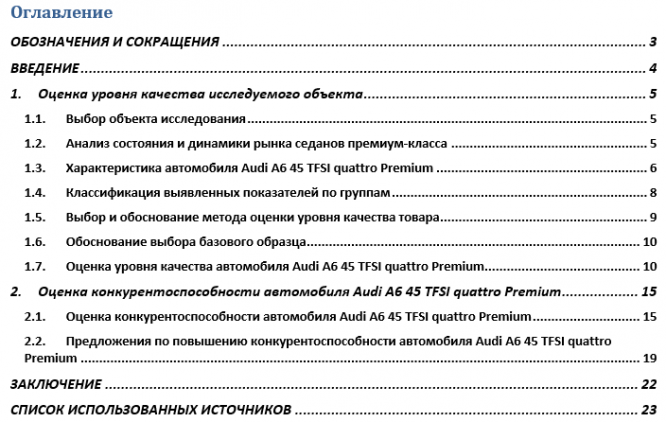 УК ДЗ Определение уровня качества и оценка конкурентоспособности автомобиля Audi A6 45 TFSI quattro Premium.