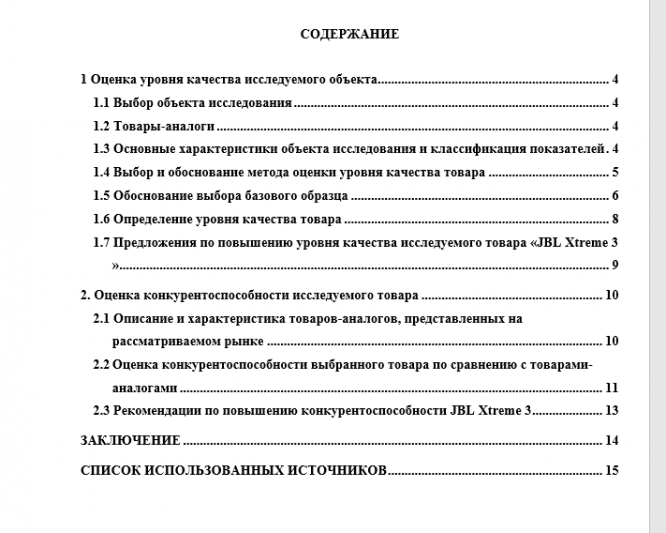 ДЗ: Определение уровня качества и оценка конкурентоспособности портативной акустической системы JBL Xtreme 3