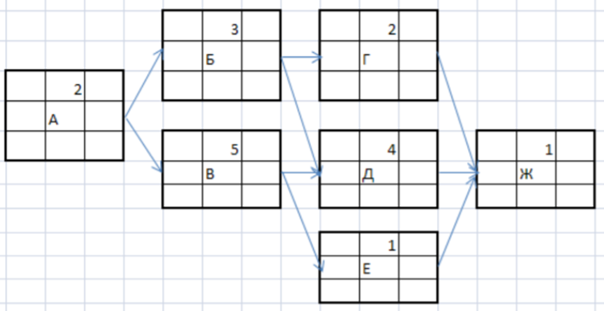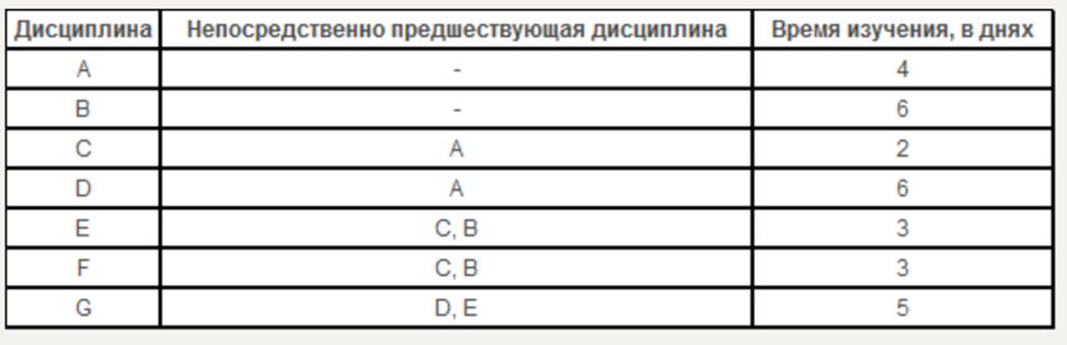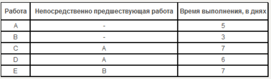 Имеются данные по работам проекта и времени их выполнения. Используя эти данные, определите продолжительность проекта.