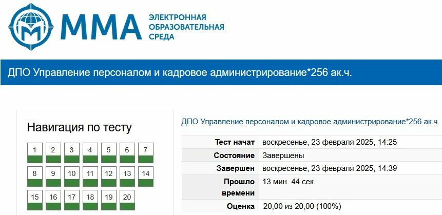Сборник ответов к экзаменационному тесту Управление персоналом и кадровое администрирование ММА.