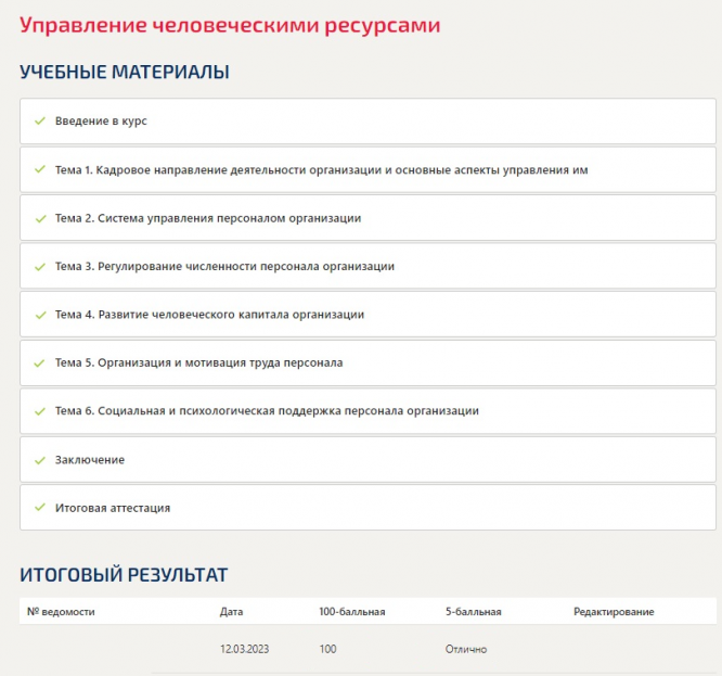 Тест "Управление человеческими ресурсами". Синергия/МОИ/МТИ/МОСАП.