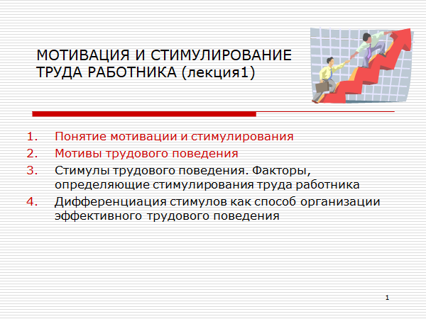 Лекции: МОТИВАЦИЯ И СТИМУЛИРОВАНИЕ ТРУДА РАБОТНИКА