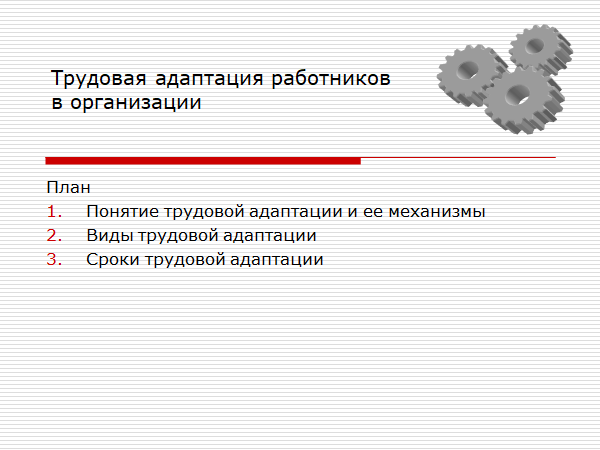 Для студентов УрГУПС по предмету Управление персоналомТрудовая адаптация работников в организацииТрудовая адаптация работников в организации