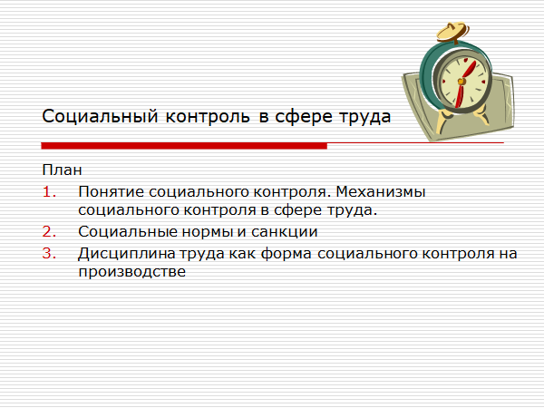 Для студентов УрГУПС по предмету Управление персоналомСоциальный контроль в сфере трудаСоциальный контроль в сфере труда