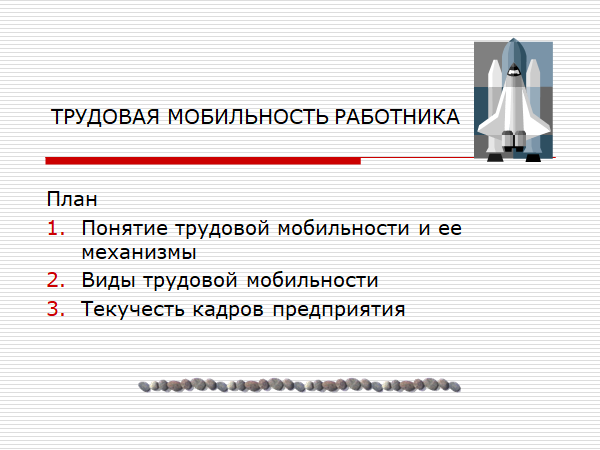 Для студентов УрГУПС по предмету Управление персоналомТРУДОВАЯ МОБИЛЬНОСТЬ РАБОТНИКАТРУДОВАЯ МОБИЛЬНОСТЬ РАБОТНИКА