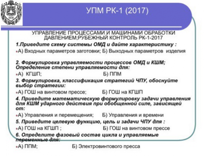 Для студентов МГТУ им. Н.Э.Баумана по предмету Управление процессами и оборудованием ОМД (МТ-6)Ответы к РК №1Ответы к РК №1