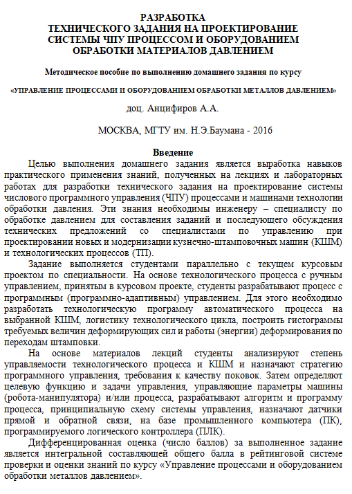 Для студентов МГТУ им. Н.Э.Баумана по предмету Управление процессами и оборудованием ОМД (МТ-6)Анцифиров А.А. - Методическое пособие по выполнению домашнего заданияАнцифиров А.А. - Методическое пособие по выполнению домашнего задания 2021-01-15СтудИзба