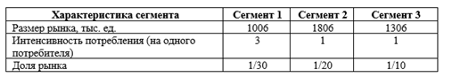 По данным таблицы маркетолог фирмы должен выбрать один из сегментов по критерию максимума размера сбыта.