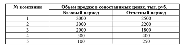 В таблице ниже приведены данные по объемам продаж компании 1-5.