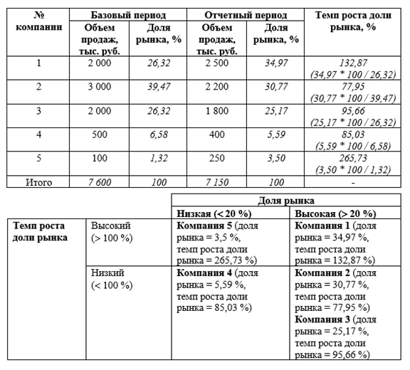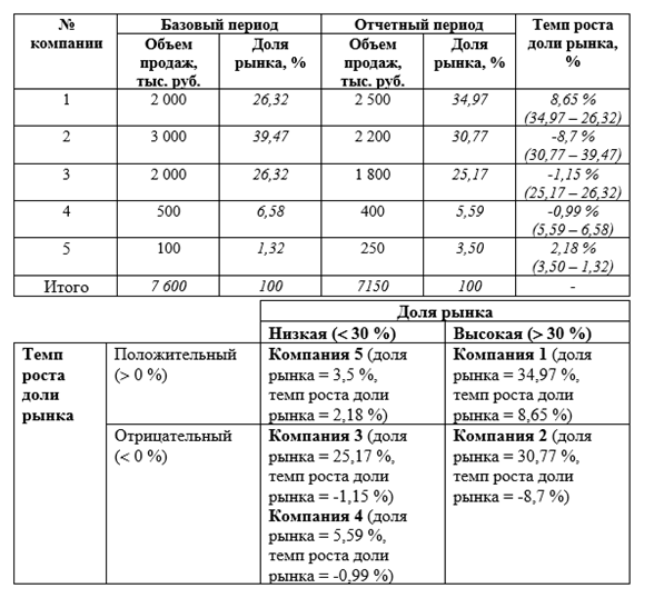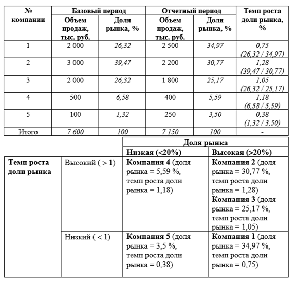 Исходя из этих данных, представьте результаты аналитической деятельности в виде конкурентной карты рынка на основе расчета рыночной доли и ее динамики.