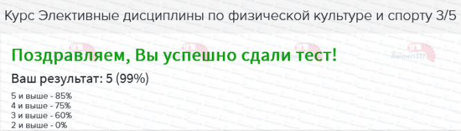 Курс Элективные дисциплины по физической культуре и спорту 3/5 - база ответов к тестам: