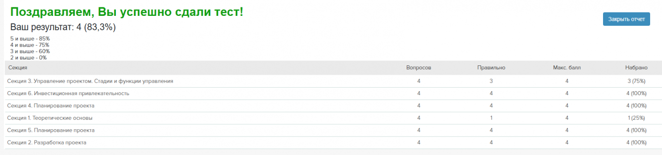 Закрытие проекта.