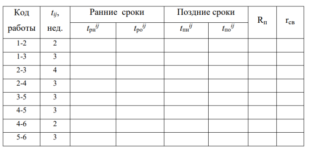 Задание: Провести расчет сетевого графика в табличной и графической форме. Рассчитать резервы времени работ. Определить коэффициенты напряженности 3-ех путей (по выбору).