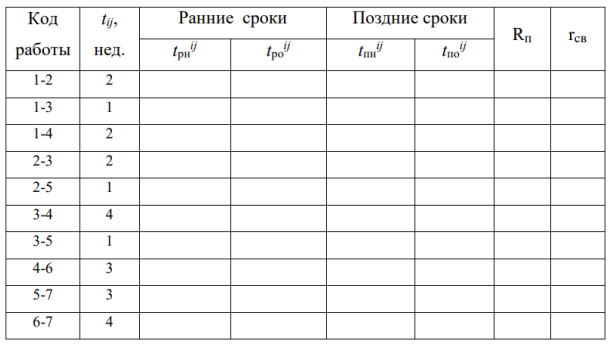 Задание: Провести расчет сетевого графика в табличной и графической форме. Рассчитать резервы времени работ. Определить коэффициенты напряженности 3-ех путей (по выбору).