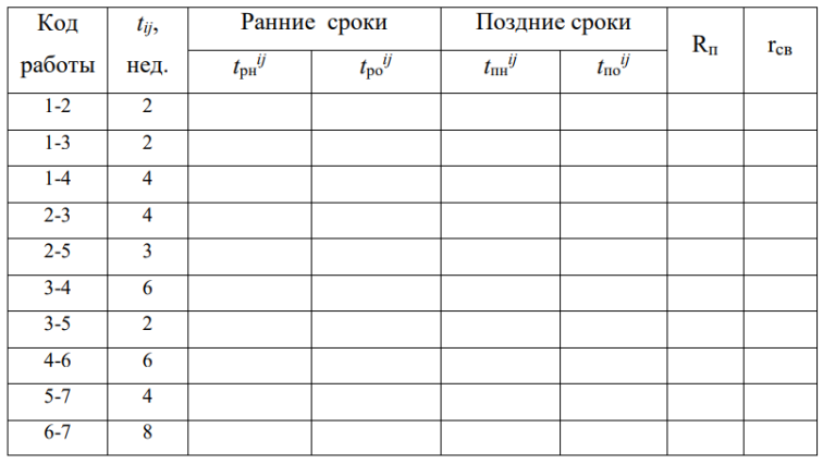Провести расчет сетевого графика в табличной и графической форме. Рассчитать резервы времени работ. Определить коэффициенты напряженности 3-ех путей (по выбору).