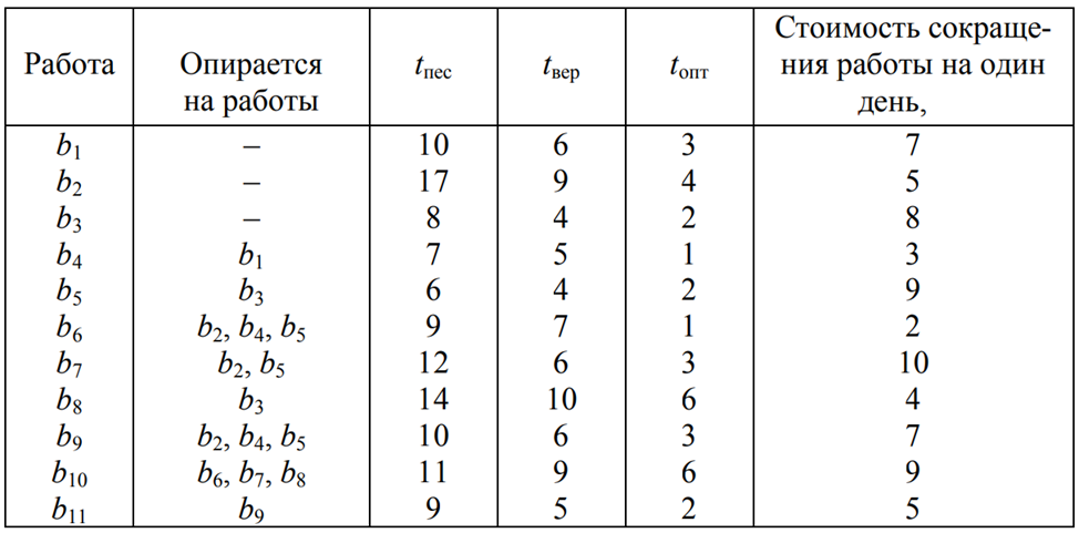Построить сетевой график для максимальной (tпес) продолжительности всех его работ, рассчитать табличным и матричным методом наиболее ранние и наиболее поздние сроки наступления событий, найти критический путь, определить полные и независимые резервы времени всех работ.