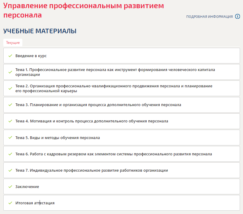 Ответы к зачёту Темы 1-7: Управление профессиональным развитием персонала вариант Итоговый тест