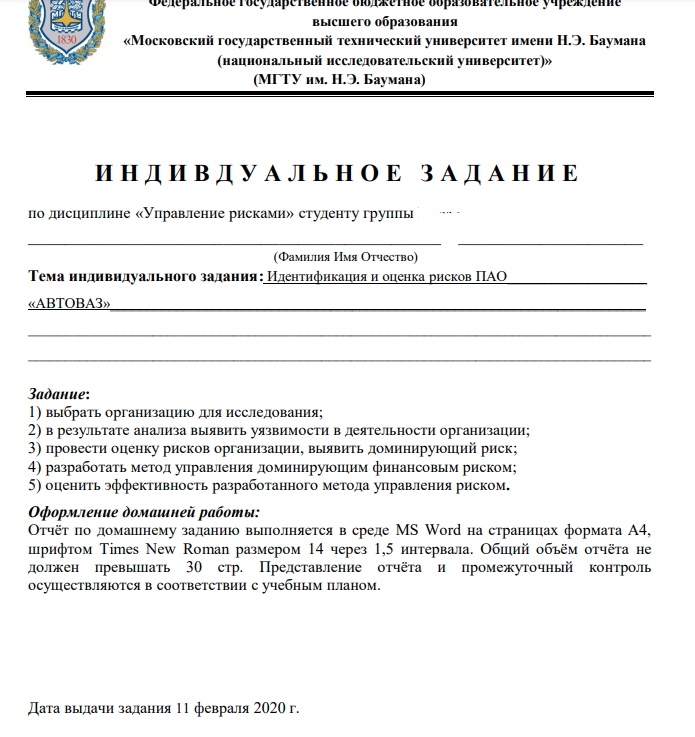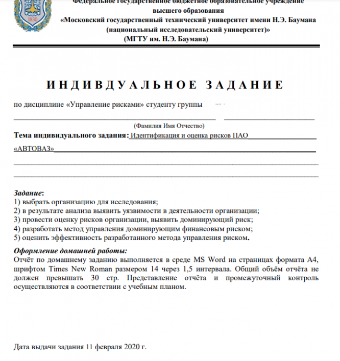 Для студентов МГТУ им. Н.Э.Баумана по предмету Управление рискамиИдентификация и оценка рисков ПАО «АВТОВАЗ» Идентификация и оценка рисков ПАО «АВТОВАЗ»
