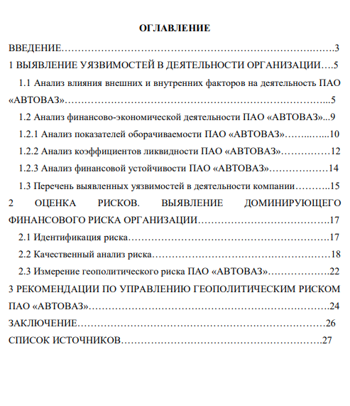 ДЗ: Идентификация и оценка рисков ПАО «АВТОВАЗ»