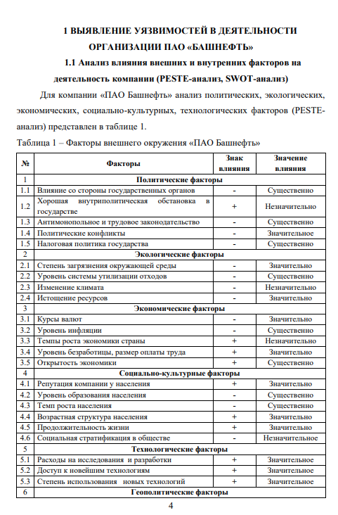 ДЗ: Идентификация и оценка риска организации ПАО Башнефть