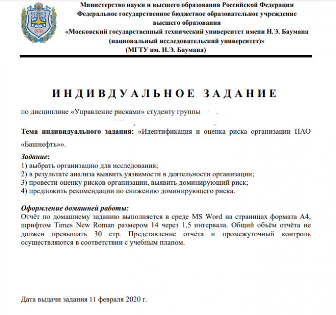 Главная » Учебные материалы » Управление рисками » Домашние задания » МГТУ им. Н.Э.Баумана » 6 семестр » Идентификация и оценка риска организации ПАО Башнефть