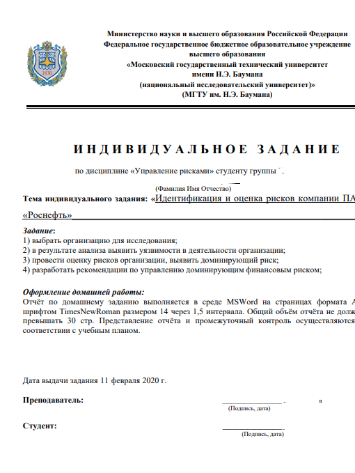 Для студентов МГТУ им. Н.Э.Баумана по предмету Управление рискамиИдентификация и оценка рисков компании ПАО РоснефтьИдентификация и оценка рисков компании ПАО Роснефть