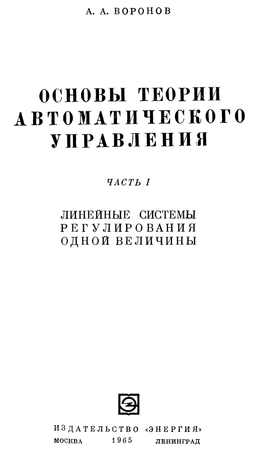 Книга: А.А. Воронов - Основы ТАУ - Линейные САР одной величины