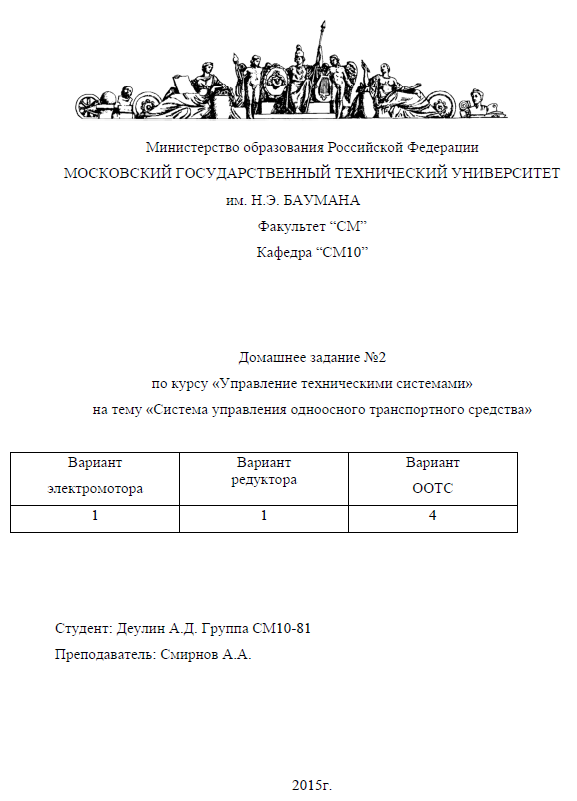 Для студентов МГТУ им. Н.Э.Баумана по предмету Управление техническими системами (УТС)Вариант 1.1.4 - ДЗ №2Вариант 1.1.4 - ДЗ №2